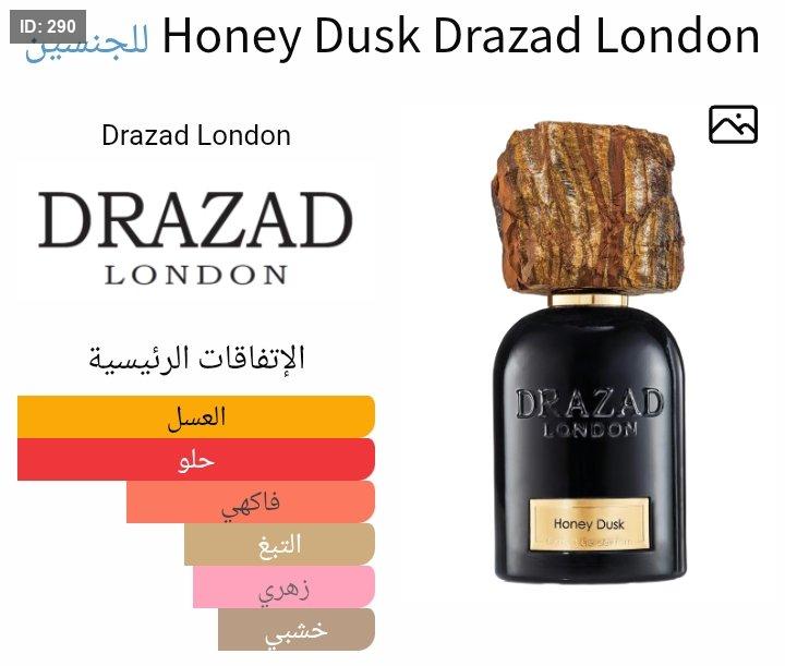 Honey Dusk Drazad London عطر شرقي - زهري للجنسين. هذا عطر جديد Honey Dusk صدر عام 2025. إفتتاحية العطر ثمار التين; قلب العطر العسل و التبغ; قاعدة العطر من التبغ.