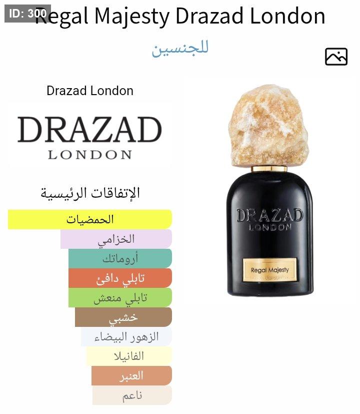 Regal Majesty Drazad London عطر شرقي - زهري للجنسين. هذا عطر جديد Regal Majesty صدر عام 2025. إفتتاحية العطر البرغموت, برتقال مر, الماندرين (اليوسفي) و البرتقال; قلب العطر الخزامي, القرنفل, زهر البرتقال و الياسمين; قاعدة العطر تتكون من خشب الصندل, حبوب التونكا, خشب الأرز, الفانيليا و العنبر.