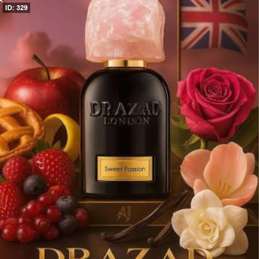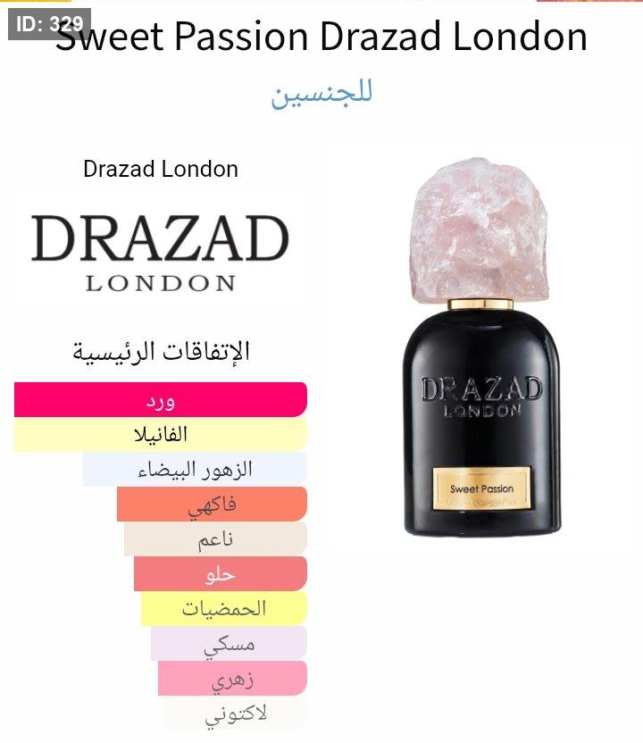 Sweet Passion Drazad London عطر للجنسين. هذا عطر جديد Sweet Passion صدر عام 2025. إفتتاحية العطر الفواكة الحمراء, بشر الليمون و التفاح المحلي; قلب العطر الورد الدمشقي, الغاردينيا, Sweet Pie و زهر الخوخ; قاعدة العطر تتكون من الفانيليا, المسك و نوتات الفواكه.