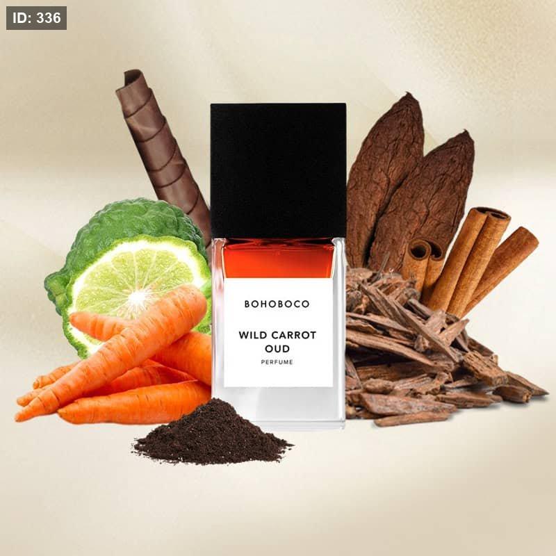 Wild Carrot Oud Bohoboco عطر للجنسين. Wild Carrot Oud صدر عام 2022. إفتتاحية العطر الجزر, القرفة و البرغموت; قلب العطر العود, الأخشاب الجافة, التبغ و خشب الأرز; قاعدة العطر تتكون من النوتات الترابيىة, الجلود و ستيراكس (العبهر).