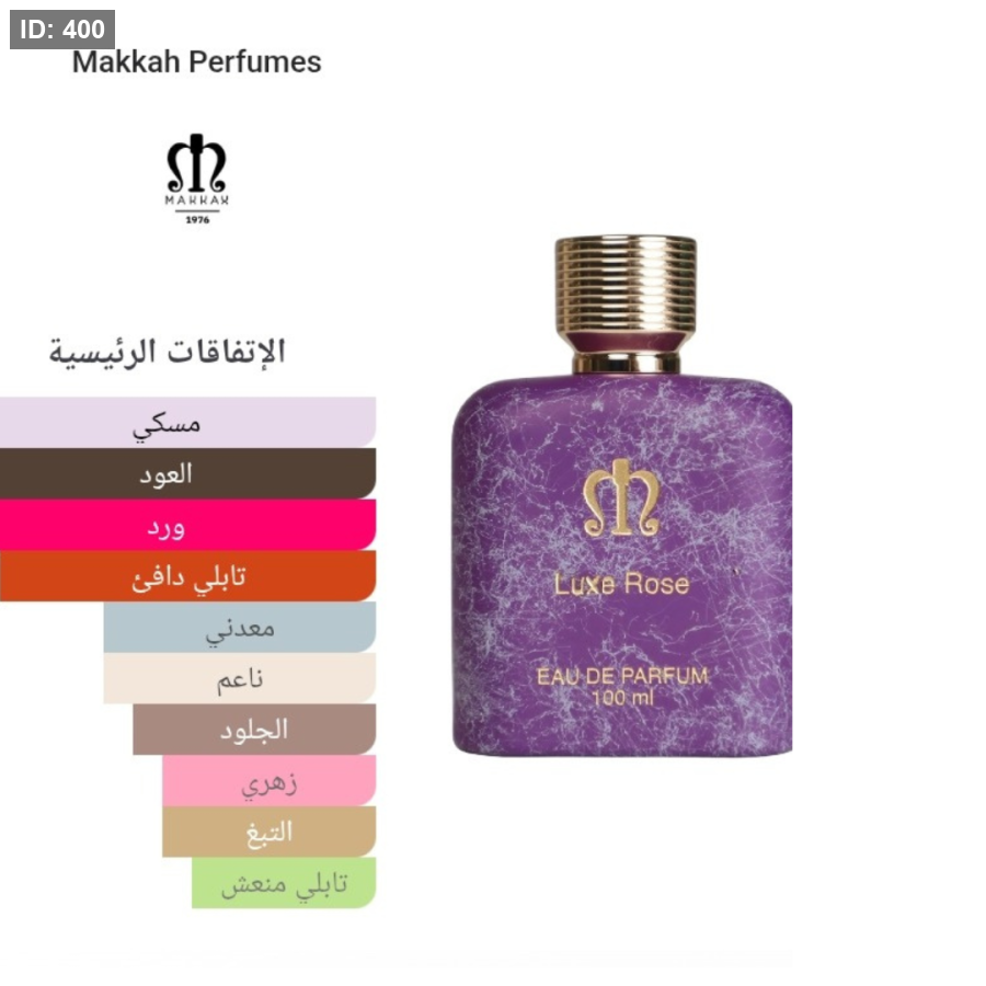 Luxe Rose Makkah Perfumes عطر شرقي - زهري للجنسين. هذا عطر جديد Luxe Rose صدر عام 2025. Hassan Al Murazza قام بتوقيع هذا العطر.