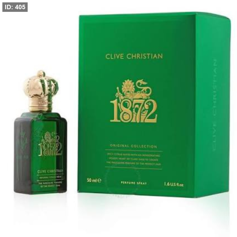 1872 For Men Clive Christian عطر حمضيات - أروماتك للرجال . 1872 For Men صدر عام 2001. Geza Schoen قام بتوقيع هذا العطر. إفتتاحية العطر البيتيتغرين, الليم, الخزامي, الجريب فروت, إكليل الجبل, البرغموت, الغلابانوم, الفلفل, الماندرين (اليوسفي), الخوخ, الأناناس و جوزه الطيب; قلب العطر المريمية, القطيفة, الياسمين, زهر بخور مريم و الفريزيا; قاعدة العطر تتكون من خشب الأرز من فرجينيا, الباتشولي, المسك, العنبر, اللبان و اللابدانوم الفرنسي.