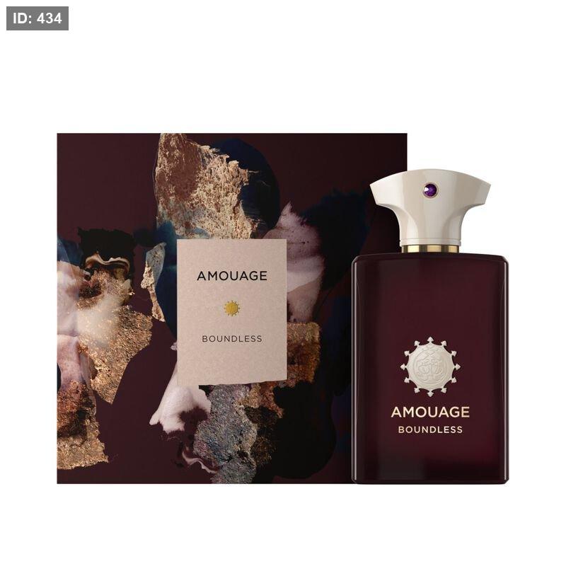 Boundless Amouage عطر خشبي - حار للجنسين. Boundless صدر عام 2021. Karine Vinchon Spehner قام بتوقيع هذا العطر. إفتتاحية العطر الهيل, البرتقال الأحمر, الزنجبيل و الإليمي; قلب العطر فانيليا بوربون و البنزوين - الجاوي; قاعدة العطر تتكون من التبغ, المر, البخور, الكاكاو, أخشاب الغاياك, الباتشولي, نجيل الهند, البردي و طحلب البلوط (طحلب السنديان).