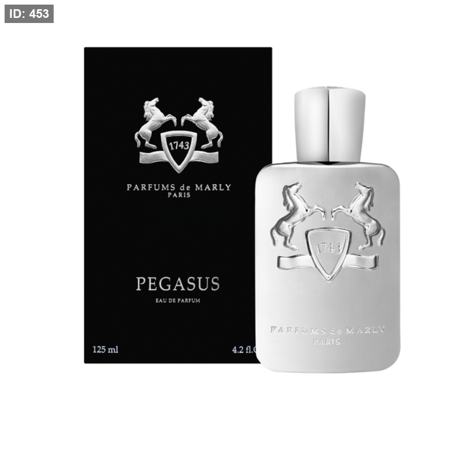 Pegasus Parfums de Marly عطر شرقي - فوچير للرجال . Pegasus صدر عام 2011. Hamid Merati-Kashani قام بتوقيع هذا العطر. إفتتاحية العطر الهيلوتروب, الكمون, البرغموت و الفلفل الوردي; قلب العطر اللوز المر, الخزامي و الياسمين; قاعدة العطر تتكون من الفانيليا, خشب الصندل, العنبر, المسك و خشب الأرز.