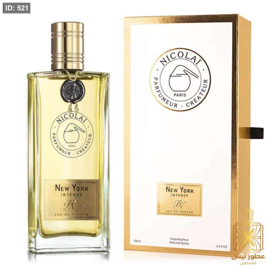 New York Intense Nicolai Parfumeur Createur عطر خشبي - أروماتك للجنسين. New York Intense صدر عام 2014. Patricia de Nicolai قام بتوقيع هذا العطر. إفتتاحية العطر البرغموت, الليمون, الشيح و الزعتر; قلب العطر الخزامي, القرنفل, الكاموميل و القرفة; قاعدة العطر تتكون من البخور, الراتينجات, ستيراكس (العبهر), المسك و حبوب التونكا.